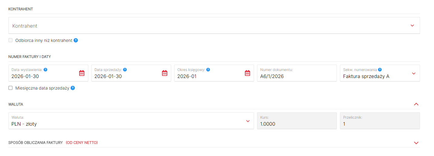 - wybrać walutę, w której faktura ma zostać wystawiona,