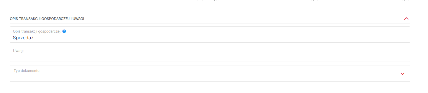- uzupełnić opis transakcji gospodarczej,