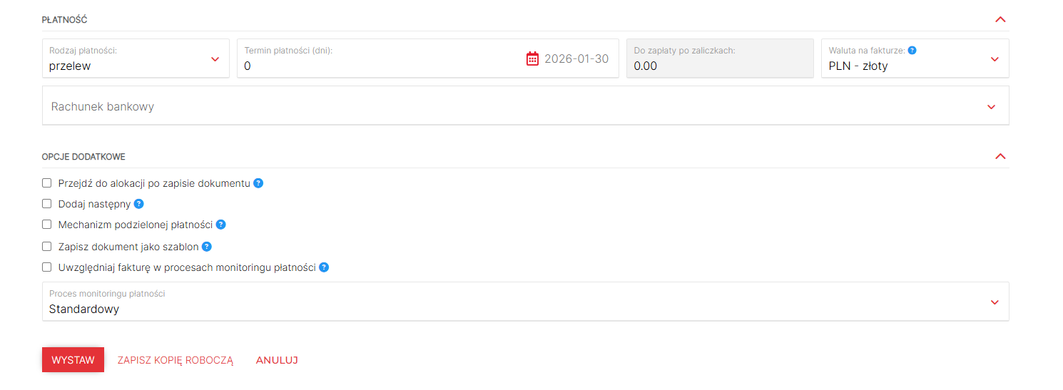 - wybrać termin płatności,
